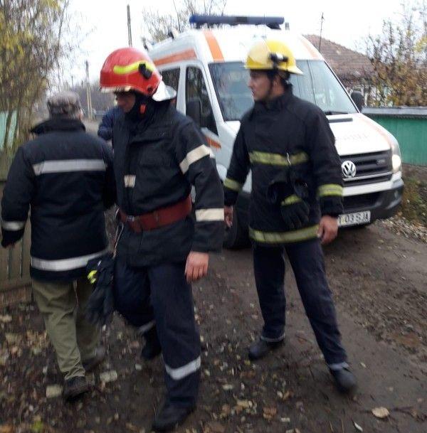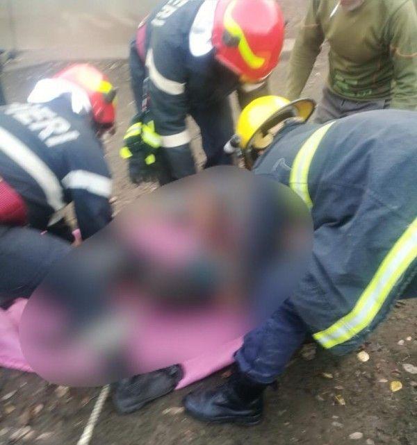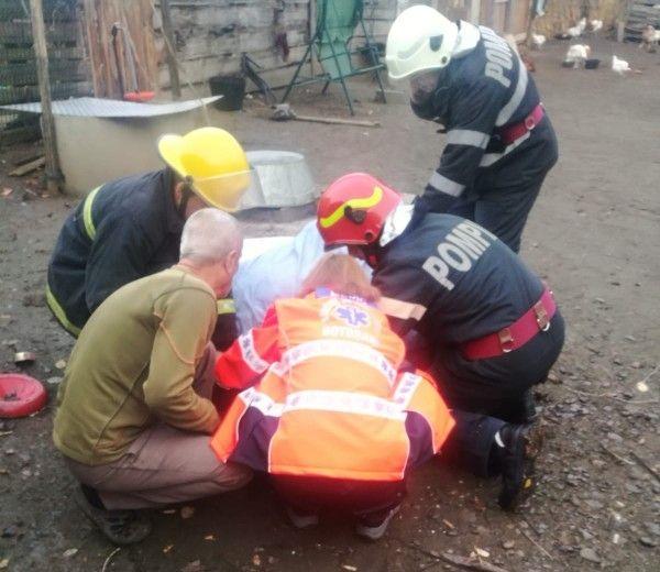 Unul dintre pompieri voluntari a coborât în fântână și ajutat de colegi a adus femeia la suprafață.