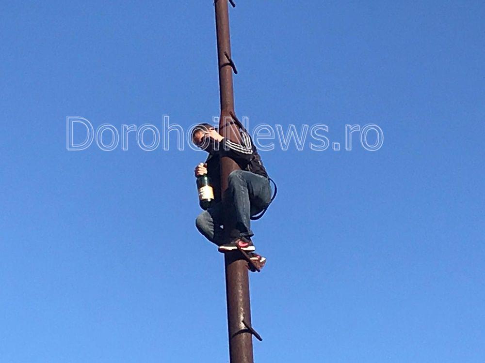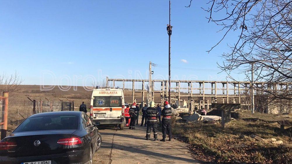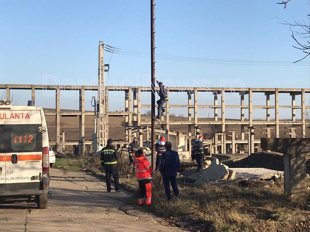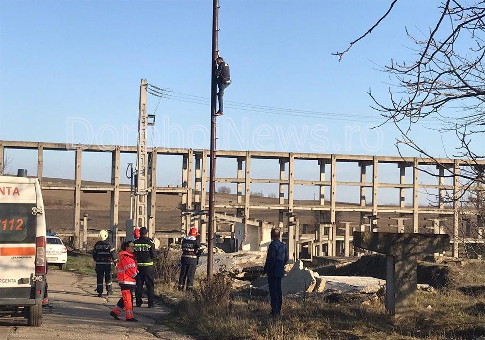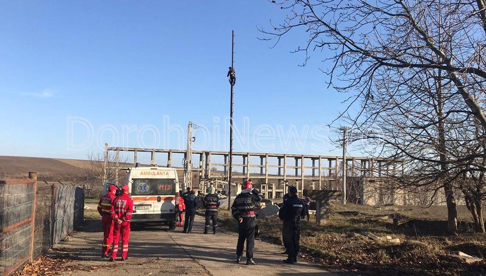 Un bărbat, tată a șase copii, s-a urcat, luni la amiază, pe un stâlp din cartierul Dumbrava Roșie (lângă fostul IMUG) din municipiul Dorohoi, amenințând că se aruncă. Botoșăneanul a cerut loc de muncă, dar și ștergerea unor datorii ca urmare a unor amenzi neplătite.