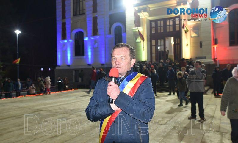 Primarul Dorin Alexandrescu a adresat câteva cuvinte dorohoienilor după încheierea spectacolului de datini și obiceiuri ce a avut loc în fața Primăriei Dorohoi.