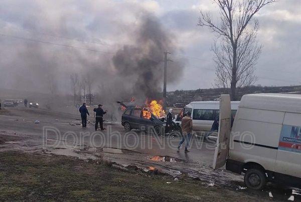 Un accident rutier a avut loc duminică, în localitatea Talpa-Blândești. Un autoturism a luat foc după ciocnirea cu un microbuz plin cu persoane.