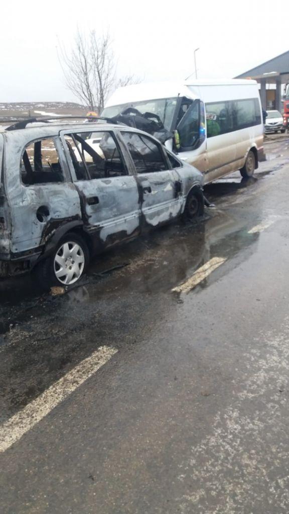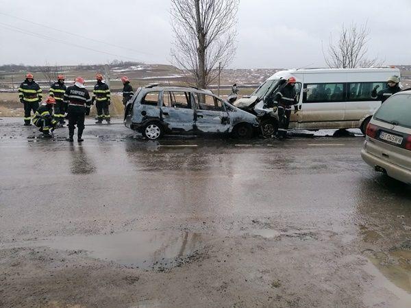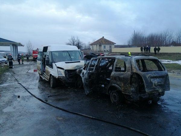 In microbuz erau 9 persoane, iar in autoturism erau 4 persoane. Imediat după momentul impactului, autoturismul a luat foc. Cei trei pasageri au reușit sa iasa din masina. In interior, pe bancheta din spate a rămas o femeie inconstienta. Un pompier aflat în timpul liber, plt. Maj. Cătălin Grindiei, a încercat sa stingă incendiul, nu a reusit, si ajutat de alți participanți la trafic a reușit sa scoata victima inconstienta din autoturism.