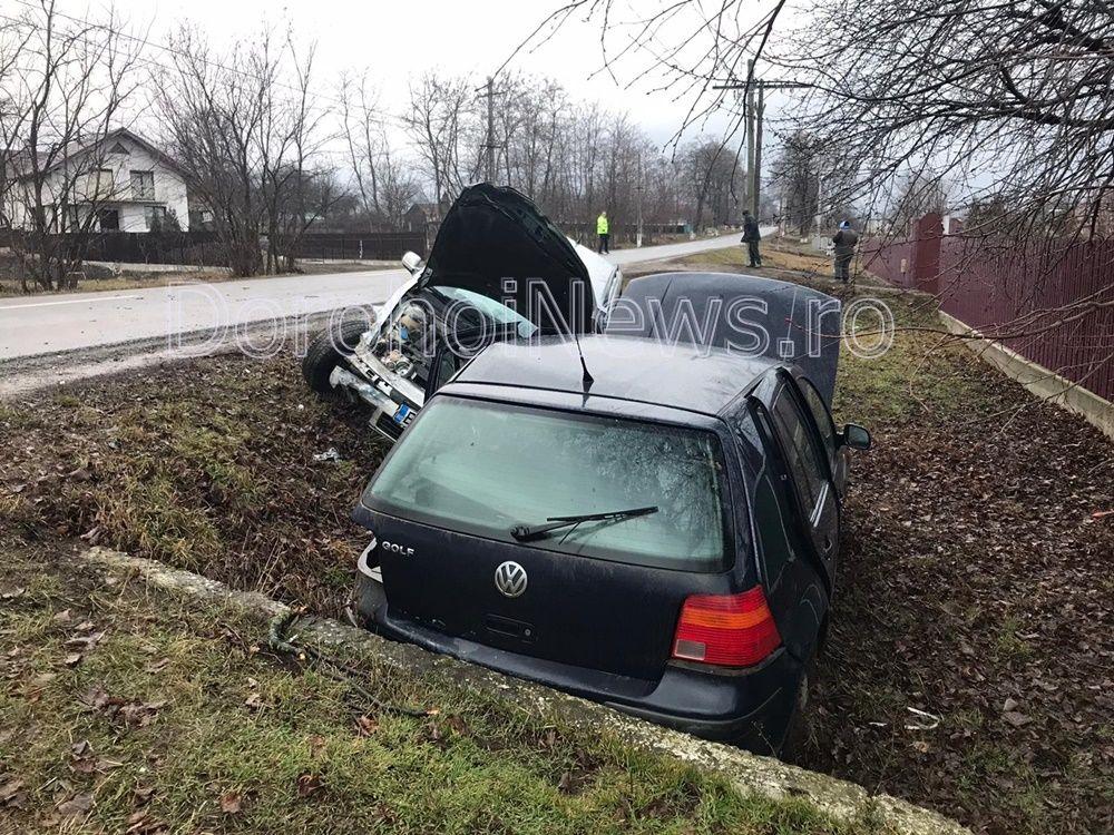 Doi bărbați au fost răniți în urma unui accident rutier produs, luni dimineață, pe drumul județean care leagă municipiul Dorohoi de Vama Racovăț, pe raza satului Pascari din comuna Șendriceni.
