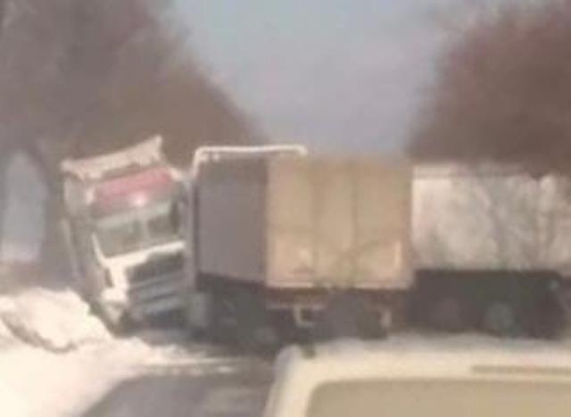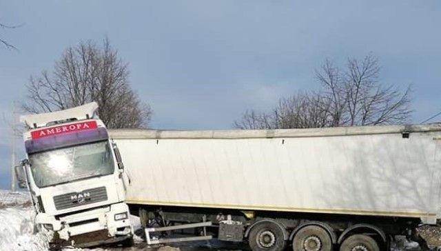 Un drum din județul Botoșani a fost blocat, joi, după ce un camion a derapat și s-a pus de-a curmezișul șoselei.