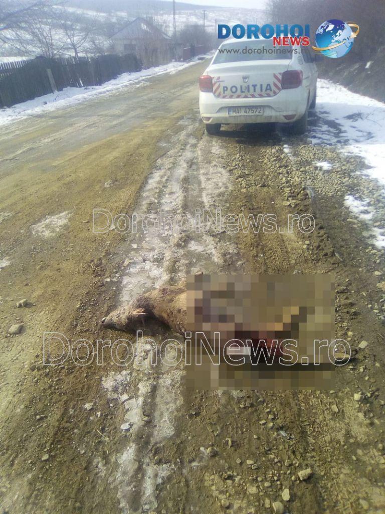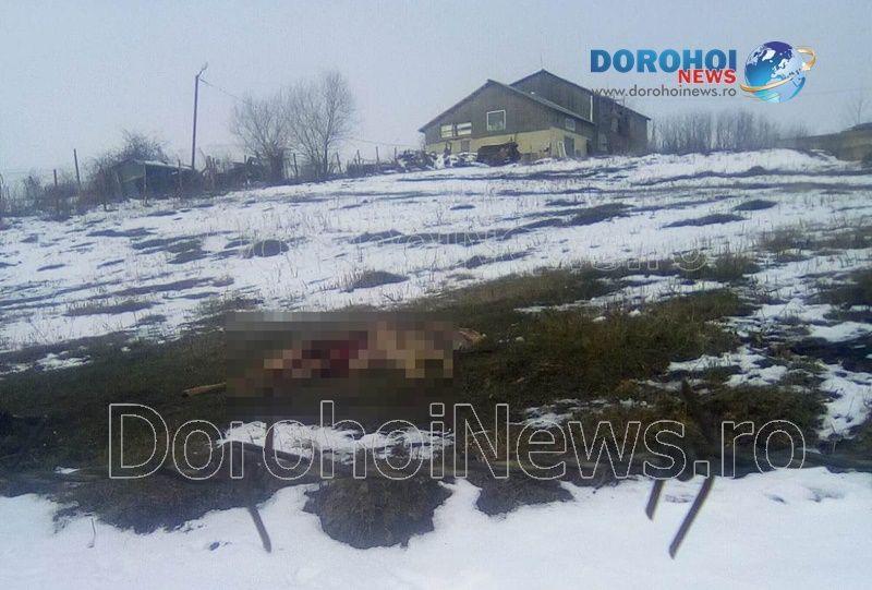 Aceasta se afla în curtea unei case nelocuite și se pare că a fost atacată și mâncată parțial de câinii vagabonzi.