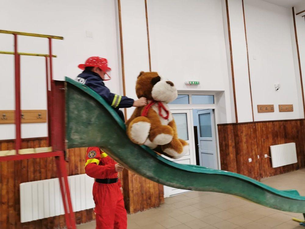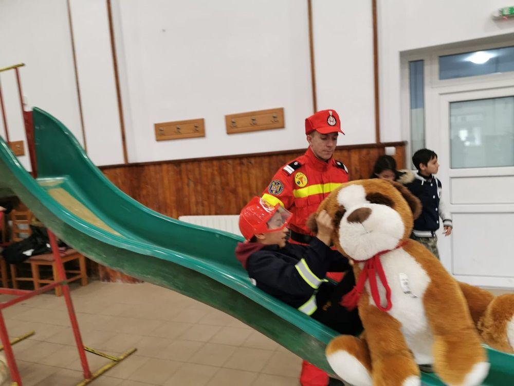 În timp ce adulții au învățat cum să prevină accidentele casnice sau cum să acorde primul ajutor în astfel de situații, cei peste 150 de copii au participat la o activitate interactivă cu rol educativ în domeniul situațiilor de urgență, condusă de mascota inspectoratului, pompierul Sam. Echipați cu costume de intervenție, micii pompieri au trecut printr-un tunel, au salvat ursuleţul sau cățelul de pluș de pe tobogan, au alergat printre jaloane şi au stins un incendiu imaginar. Au fost răsplătiți cu dulciuri și multe aplauze.