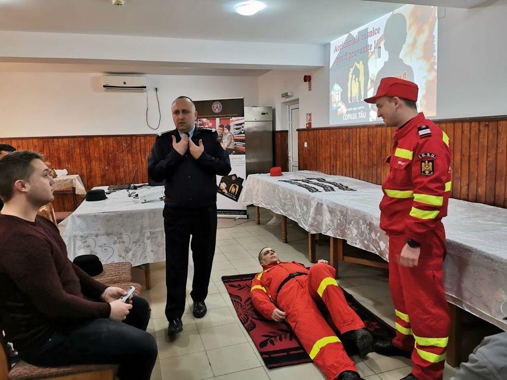 Salvatorii botoşăneni le-au arătat celor peste 100 de adulți adunați la căminul cultural din comună care sunt pericolele la care sunt expuși cei mici în propriile locuințe, dar și măsurile ce trebuie luate pentru a fi evitate astfel de accidente.