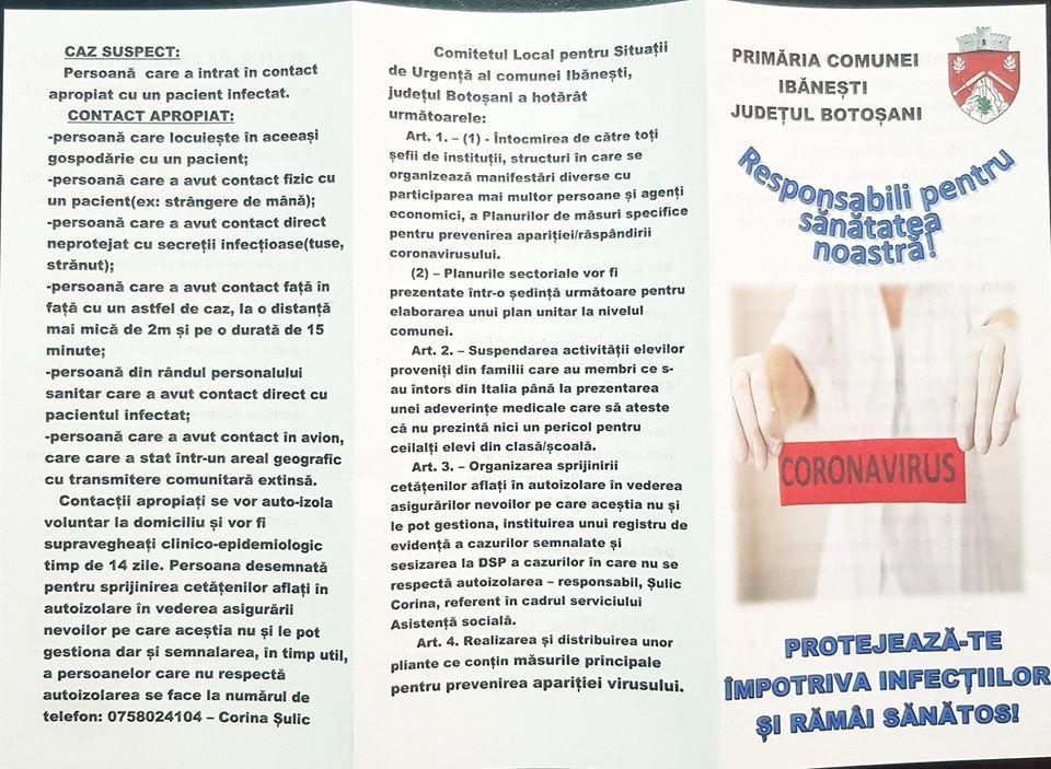Sănătatea localnicilor este prioritară, de aceea Comitetul Local pentru Situații de Urgență al comunei Ibănești, județul Botoșani a hotărât următoarele: