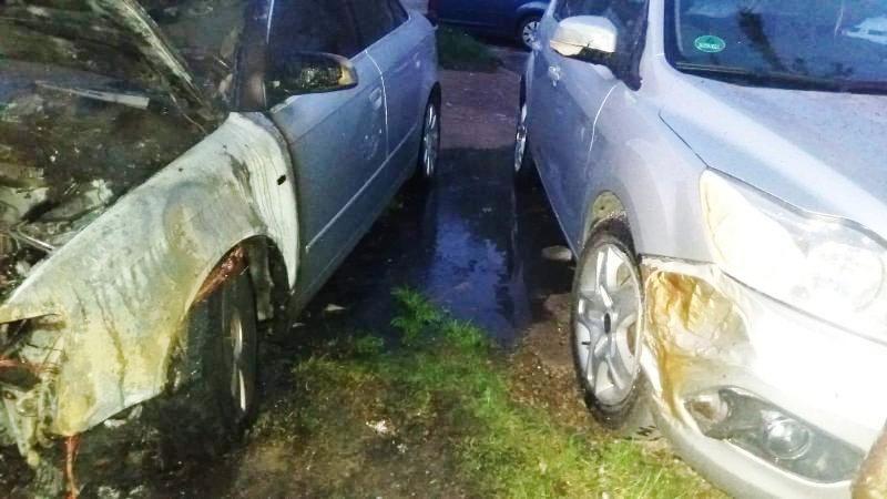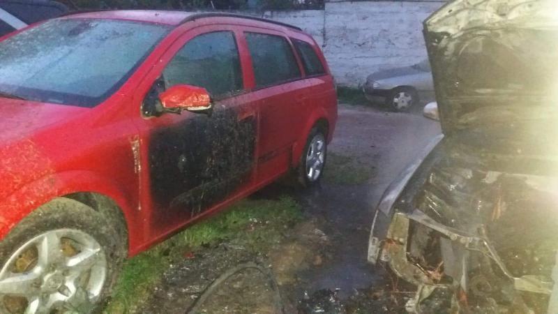 Din primele informații unul dintre autoturisme a ars în proporție de cca 50%, (compartiment motor, capota și bord). Căldura degajată a mai afectat două autoturisme din apropiere, la una bara și un far și la a doua o portiera și farul.