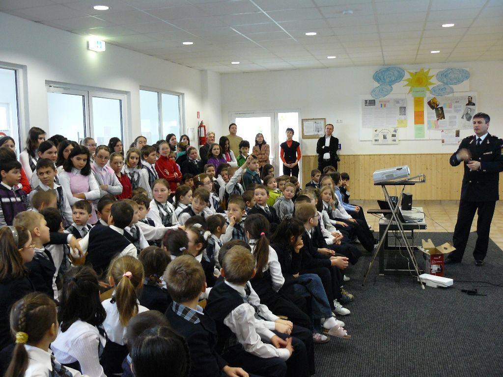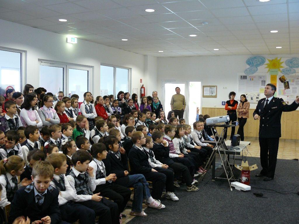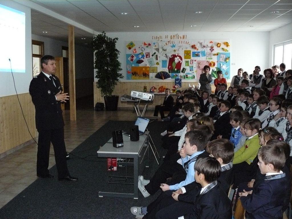 Activitatea de joi, 17 februarie, a avut ca scop însuşirea de către profesori, elevi, preşcolari şi angajaţi ai instituţiei, a normelor şi regulilor de comportare în perioada premergătoare, pe timpul şi după producerea unor incendii sau inundaţii, precum şi a măsurilor de auto-ajutor şi prim ajutor în astfel de situaţii.