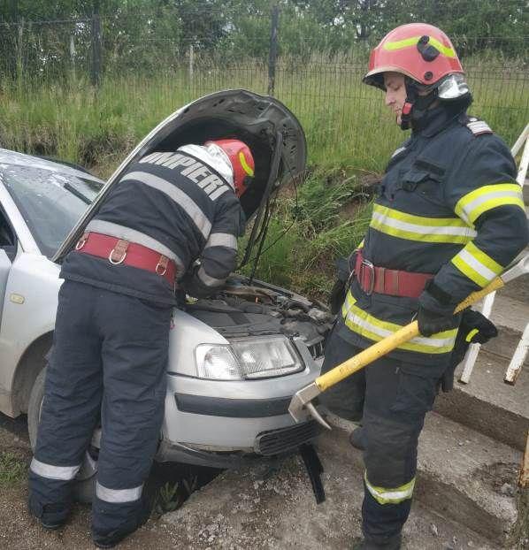La fața locului au intervenit pompierii pentru înlăturarea pericolului de izbucnire a unui incendiu. Când au ajuns la fața locului, șoferul era scos din autoturism.
