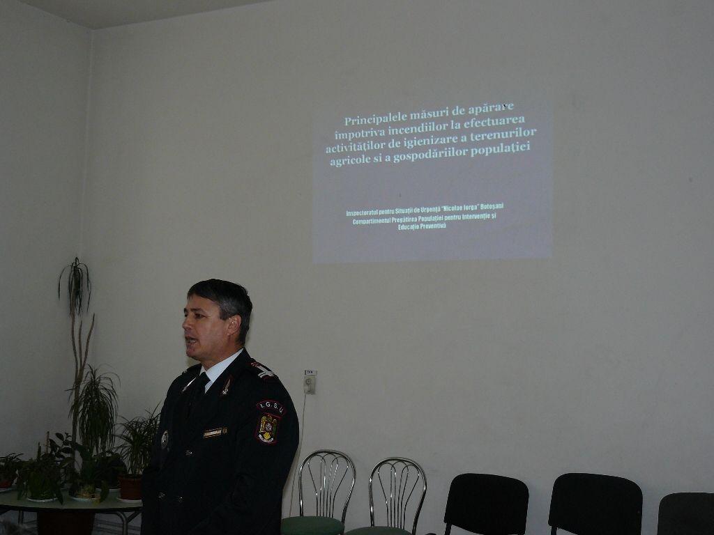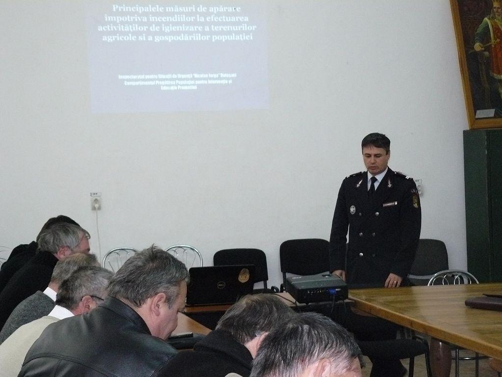 “Activitatea de instruire s-a desfăşura în cursul acestei săptămâni şi vizează pregătirea tuturor primarilor din judeţ, pe 5 centre de pregătire, în 5 locaţii diferite. Temele de pregătire sunt cu caracter teoretic şi practic.” a declarat pentru Dorohoi news, lt. colonel Radu ŢIPIŞCĂ, şef comp. în cadrul inspecţiei judeţene din ISU Botoşani.