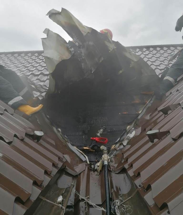 Intervenția prompta a salvatorilor a împiedicat extinderea flăcărilor la întregul acoperiș sau la bunurile din interior.