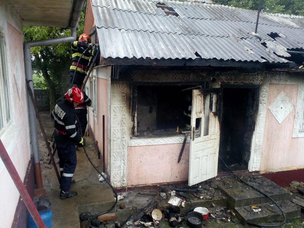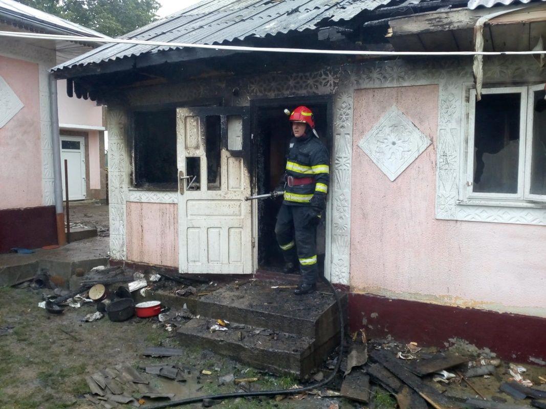 Proprietara, în vârstă de 82 ani, a fost transportată la spital de către un echipaj SMURD. Are arsuri la față și mâini și atac de panică.