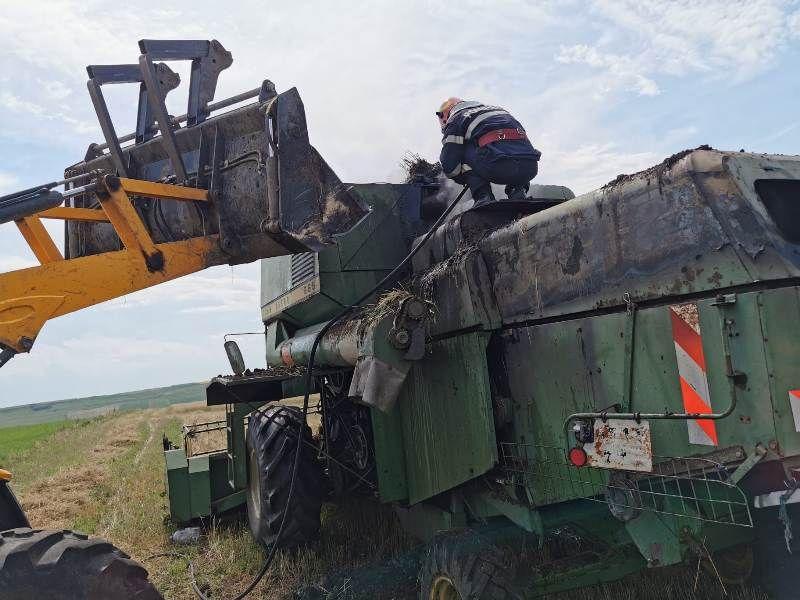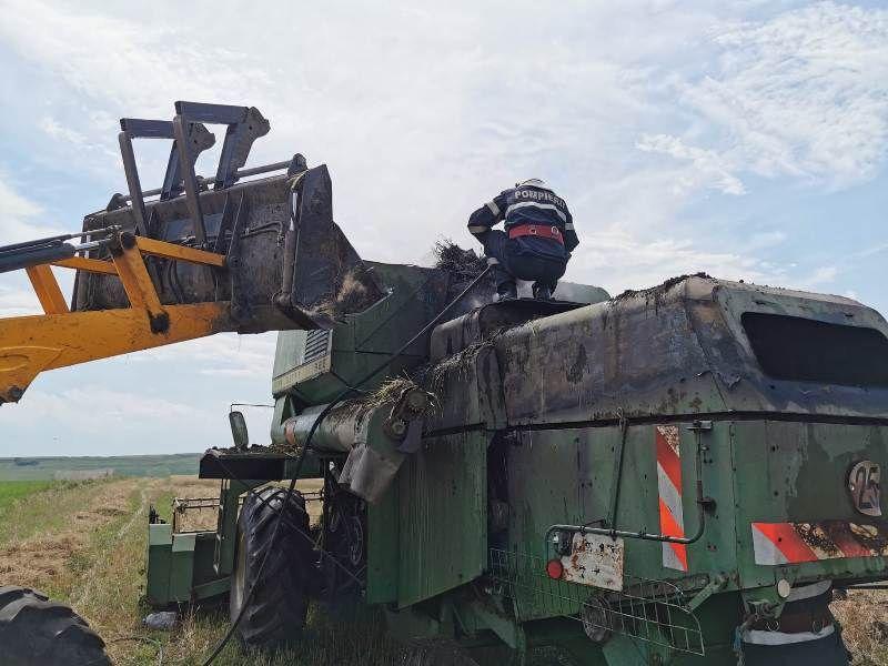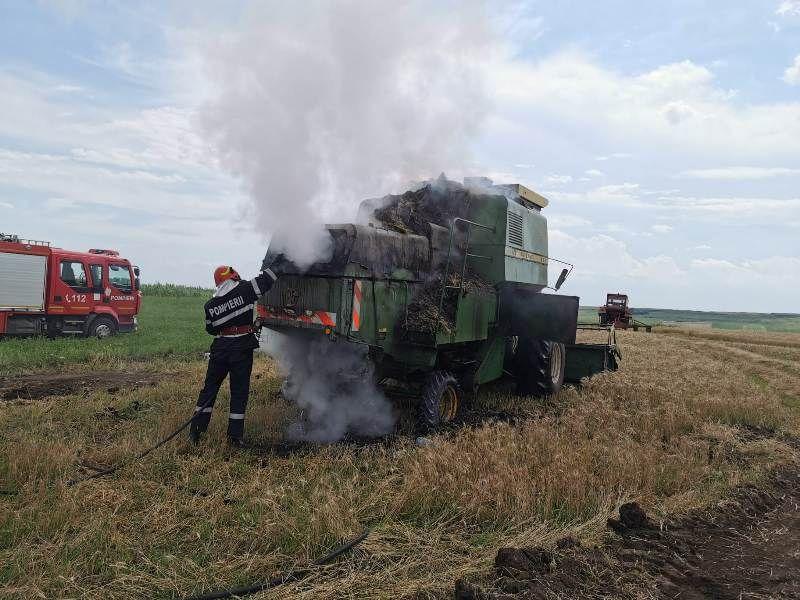 Nouă pompieri militari și voluntari au intervenit mai bine de o jumătate de oră pentru stingerea incendiului. Combina agricolă a fost distrusă în proporție de 70%.