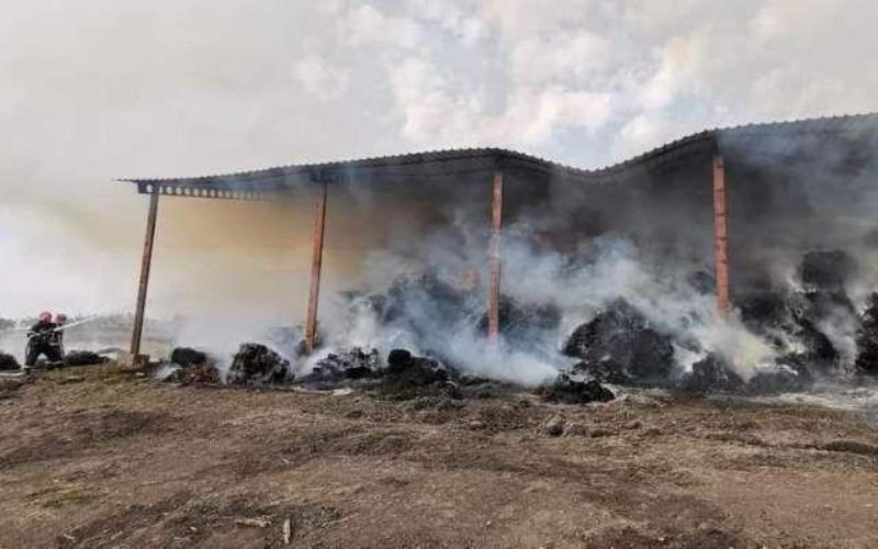 Cauza probabilă a incendiului o constituie autoaprinderea baloților de furaje depozitați în stare de umezeală, fără aerisire.