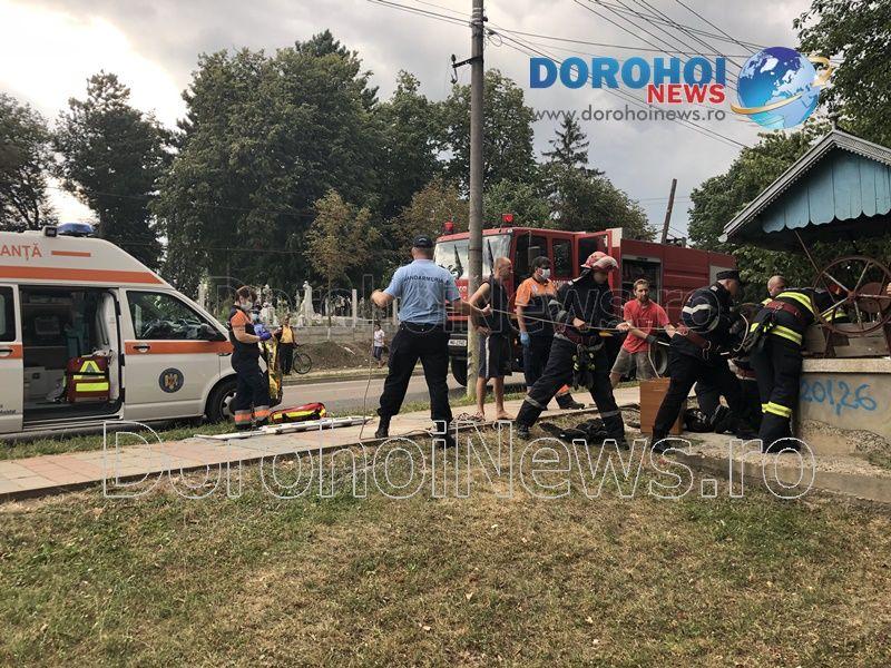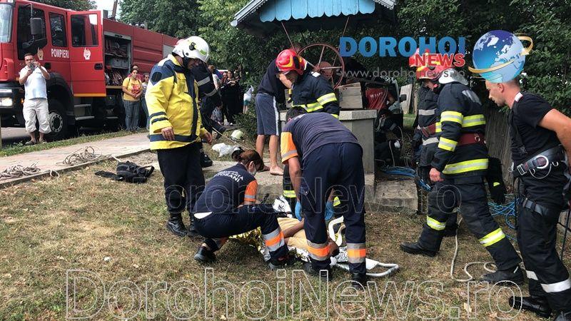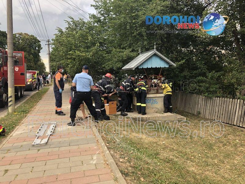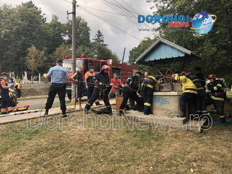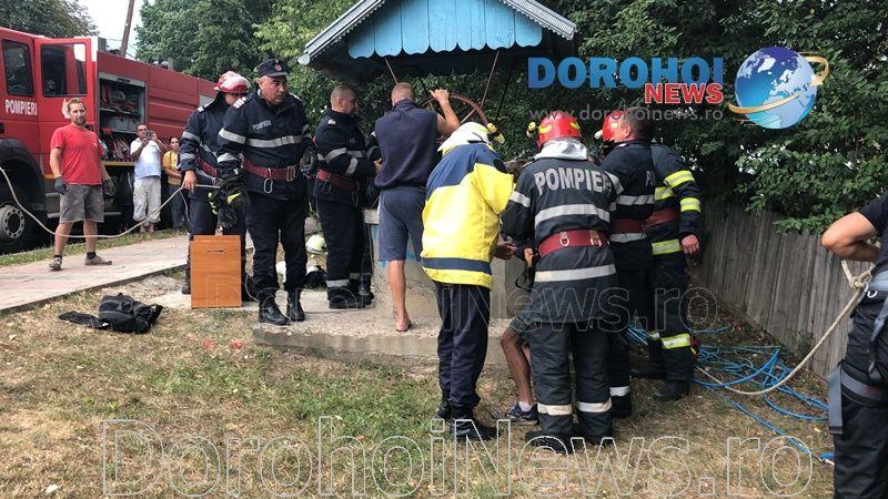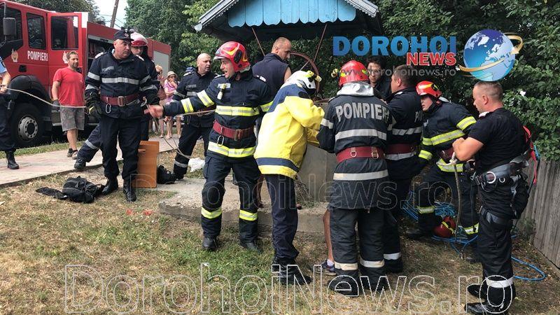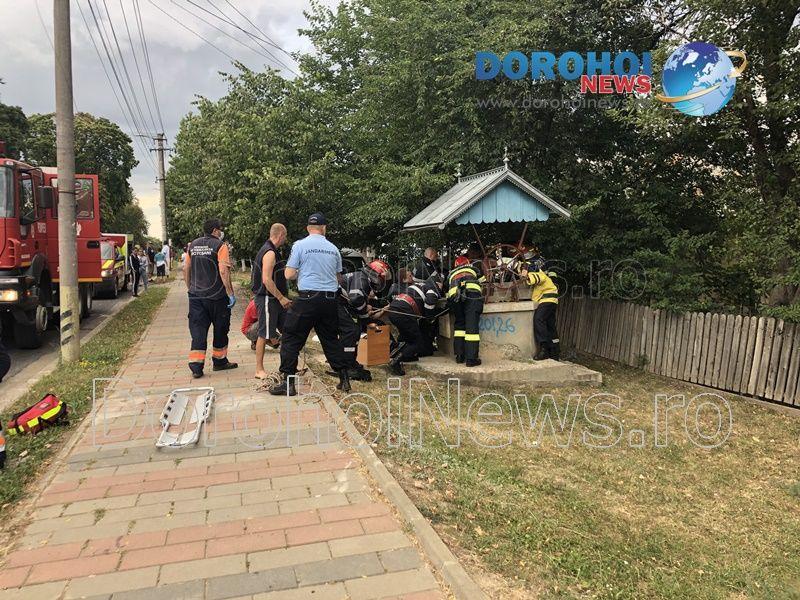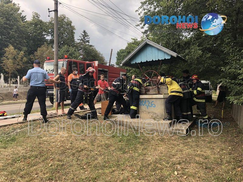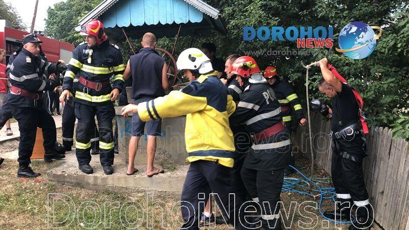 Pompierii din cadrul Detașamentului de Pompieri Dorohoi au fost solicitați sa intervină sâmbătă, 15 august 2020, î jurul orei 17:00, pentru a scoate o persoană căzută într-o fântână de pe raza municipiul Dorohoi.