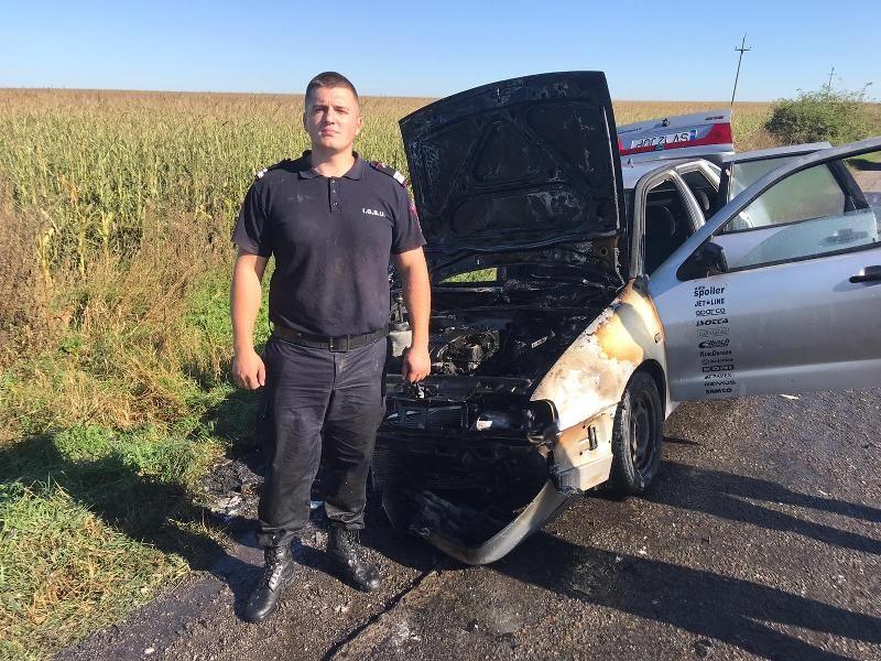 În același timp, a ajuns la fața locului și Serviciul Voluntar pentru Situații de Urgență din localitate, cu o autospecială cu apă și spumă. Folosind o țeavă de stingere de la autospeciala SVSU, sg.maj. Nicușor Vasilică Apetrei a stins incendiul înainte de sosirea colegilor de la Inspectoratul pentru Situații de Urgență „Bucovina” al Județului Suceava, impierdicând flăcările să ajungă la butelia de gaz din portbagajul mașinii.