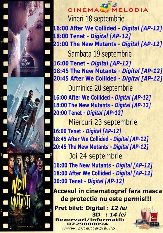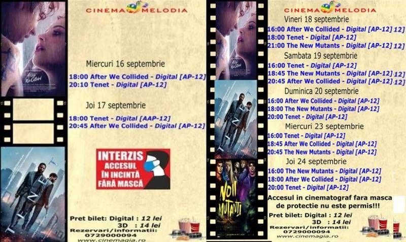Dragi cinefili, vă mulțumim că sunteți alături de noi și vă anunțăm că începând cu data de 16 SEPTEMBRIE 2020 redeschidem cinematograful MELODIA.