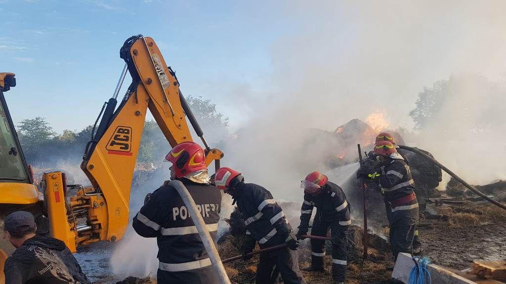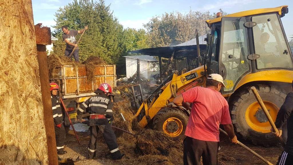 În prezent incendiul este localizat. Se lucrează la stingerea focarelor și înlăturarea efectelor. Intervenția este una de durată având în vedere faptul că arde o cantitate mare de furaje și trebuie verificat fiecare metru pătrat pentru a elimina riscul de reaprindere.