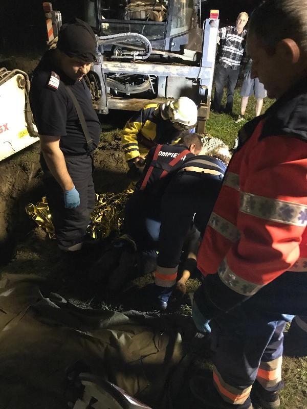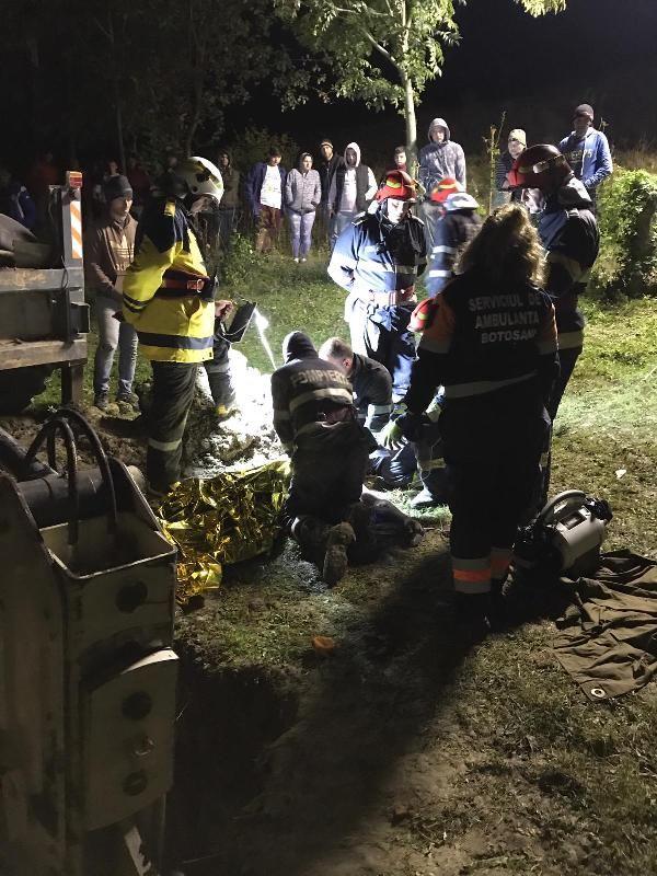 Timp de două ore, nouă pompieri, de la Detașamentul de Pompieri Dorohoi, au acționat pentru a-l scoate de sub pământ. S-a intervenit cu un buldoexcavator, cu accesorii specifice și chiar cu mâinile goale.