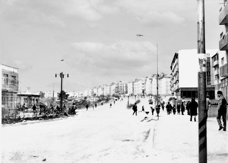 Fotograful, situat în fata actualei Farmacii, deservită în prezent de domnul Zaiţ, a surprins cu obiectivul o porţiune din clădirea care abia se construia vis-a-vis, clădire care găzduieşte magazinul de Piese auto. Restaurantul Bulevard, vizibil în planul apropiat, se pare că era nefuncţional, fiind cel mai probabil, în amenajare.