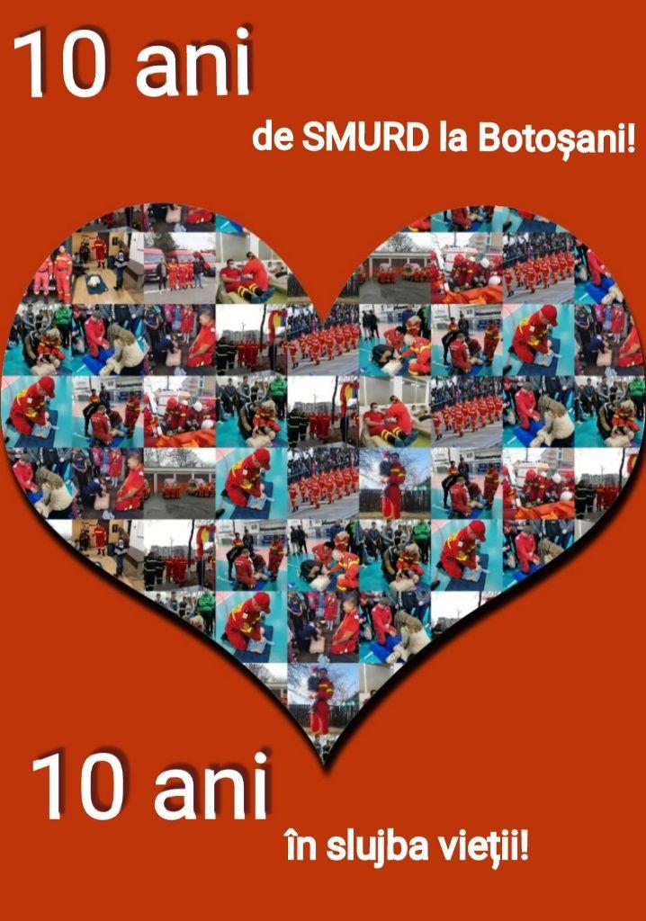Parcursul celor zece de ani de activitate SMURD în slujba botoșănenilor este înnobilat de rezultatele obținute, profesionalismul și implicărea dovedite în toate misiunile încredințate și materializate în atingerea celui mai înalt obiectiv : salvarea de vieți.