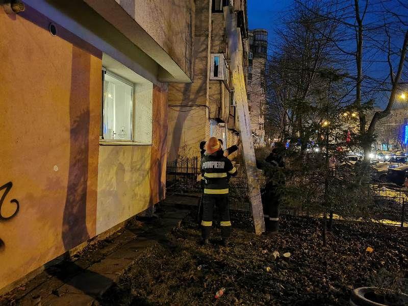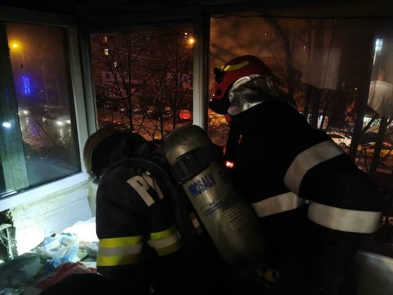 Panică într-un bloc de pe Calea Națională din municipiul Botoșani după ce bunurile depozitate într-un balcon situat la etajul II s-au aprins, cel mai probabil, de la o țigară lăsată aprinsă lângă materiale combustibile.