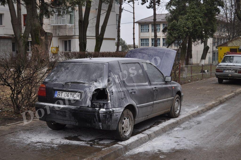 Focul a distrus unele părți componente ale autoturismului, pagubele fiind minore. Incendiul a fost lichidat la ora 16:00. Proprietarul autoturismului se numeşte Lăcrămioara A. din Dorohoi și era venită în vizită la sora ei.
