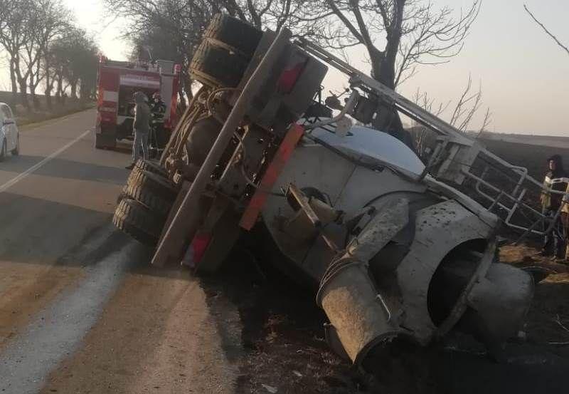 Un camion s-a răsturnat în afara părții carosabile în localitatea Roma, în după-amiaza zilei de joi, 11 martie 2021.