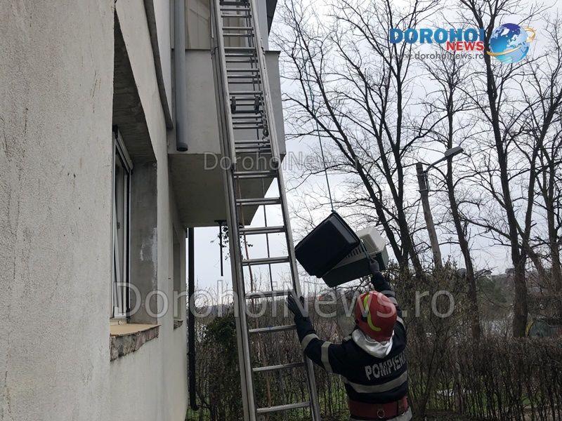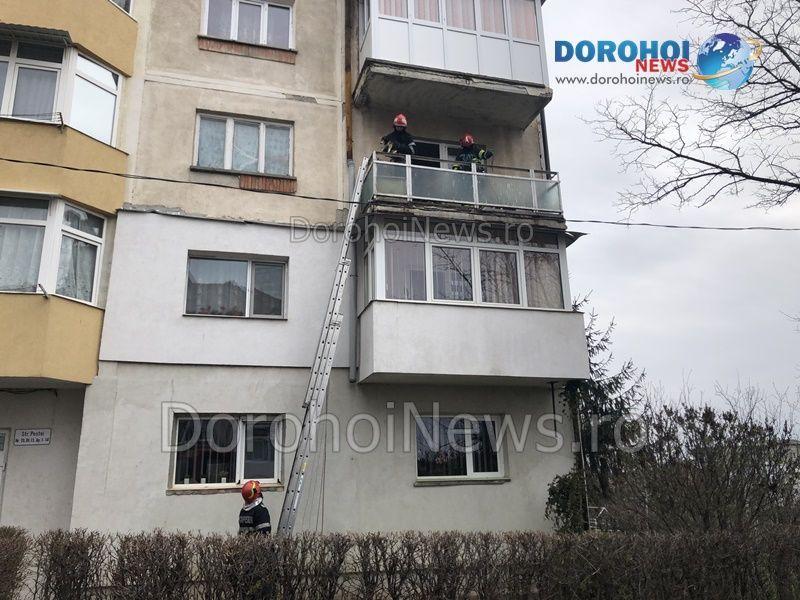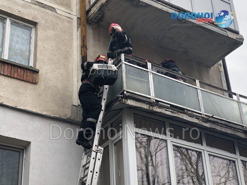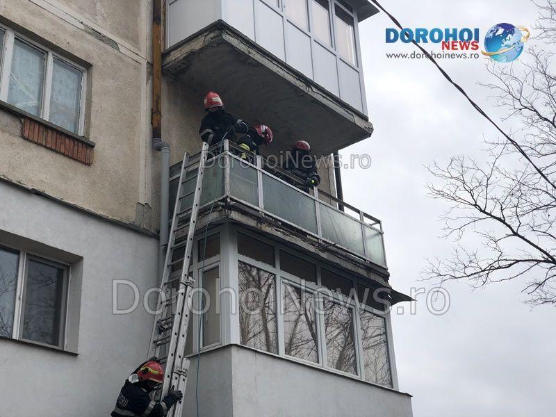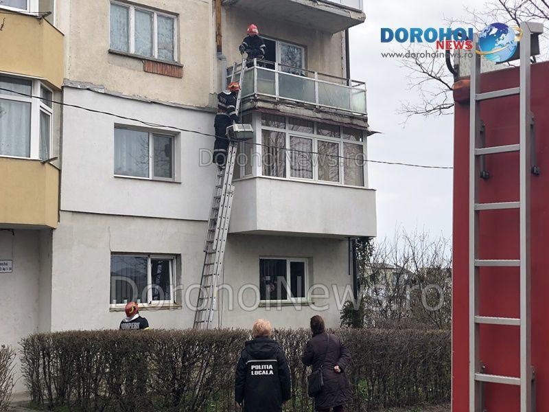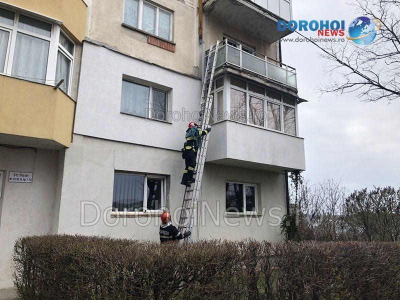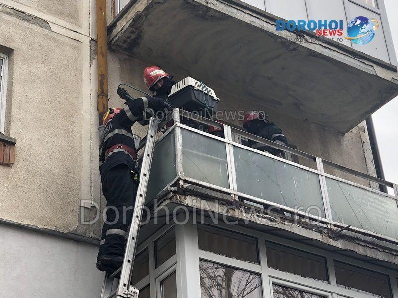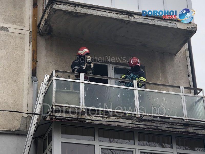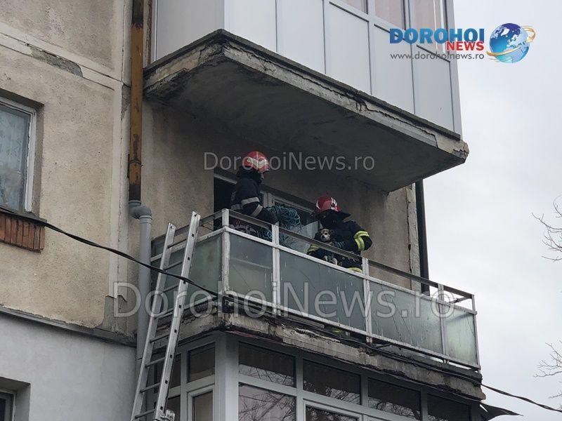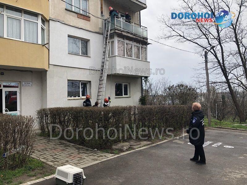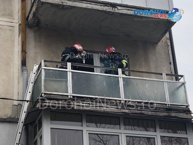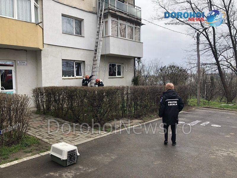 Pompierii a intervenit prin balconul apartamentului situat la etajul 1 și i-au scos pe cei doi câini care au fost preluați de o asociație cu profil de protecție a animalelor.