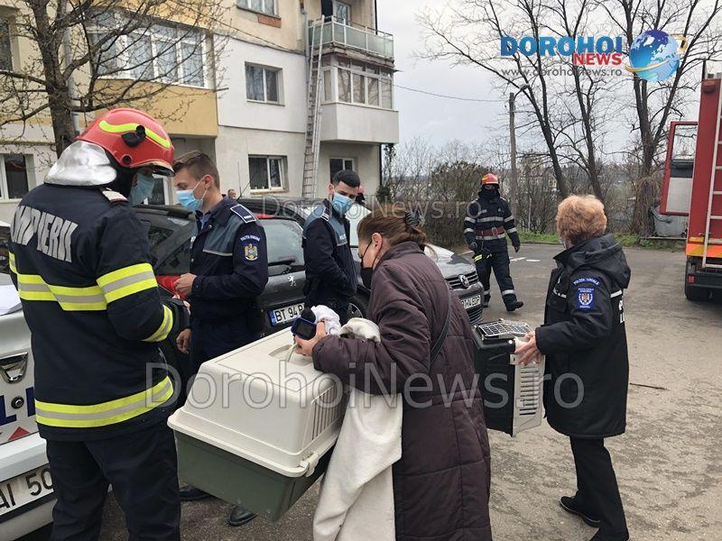 „Noi am aflat despre acest caz și am solicitat sprijinul Poliției naționale pentru a putea scoate în mod legal cei doi câini din apartament. Lucrurile s-au concretizat în această dimineață (n.r. 16 aprilie 2021), câinii fiind acum în siguranță.”, a declarat Angelica Gheras, polițist local în cadrul Poliției Locale Dorohoi.