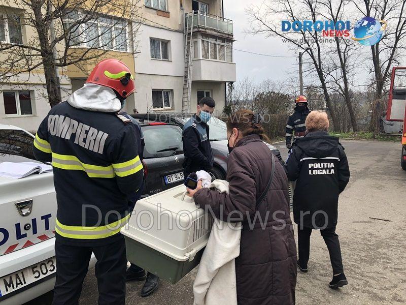 Poliția Locală Dorohoi a aflat de acest fapt în seara zilei de joi, 15 aprilie 2021, și a demarat procedurile pentru a scoate cei doi câini aflați în îngrijirea persoanei decedate. Demersurile s-au concretizat în dimineața zilei de vineri, 16 aprilie 2021, când la fața locului s-au deplasat reprezentanții Poliției Locale și Poliției Municipale, împreună cu un echipaj de pompieri din cadrul Detașamentului de Pompieri Dorohoi.
