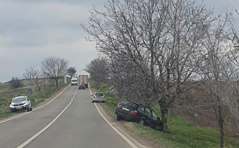 La revenirea pe bandă, Opelul a acroşat BMW-ul, iar aceasta din urmă a fost proiectată în copac.