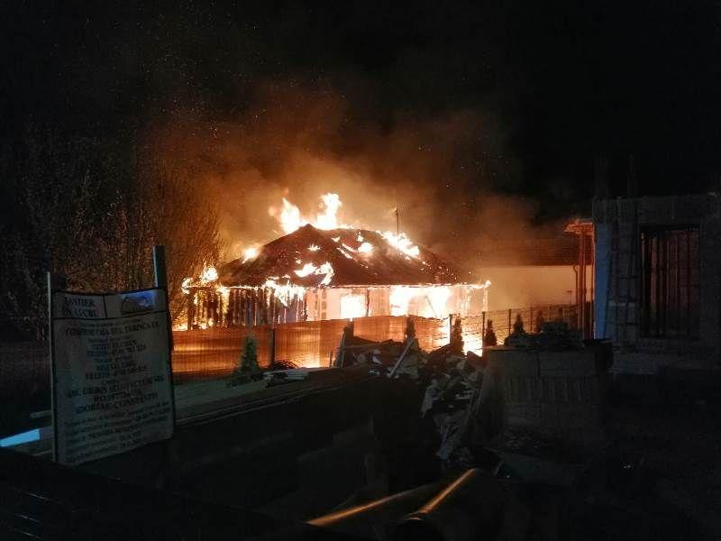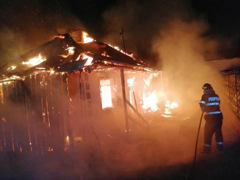 Două persoane, un bărbat de 52 ani și o femeie de 64 ani, au rămas fără acoperiș deasupra capului după ce casa în care locuiau a fost distrusă în totalitate de flăcări.