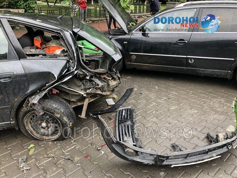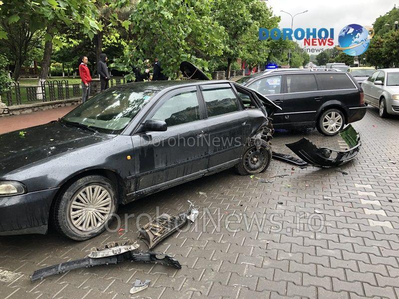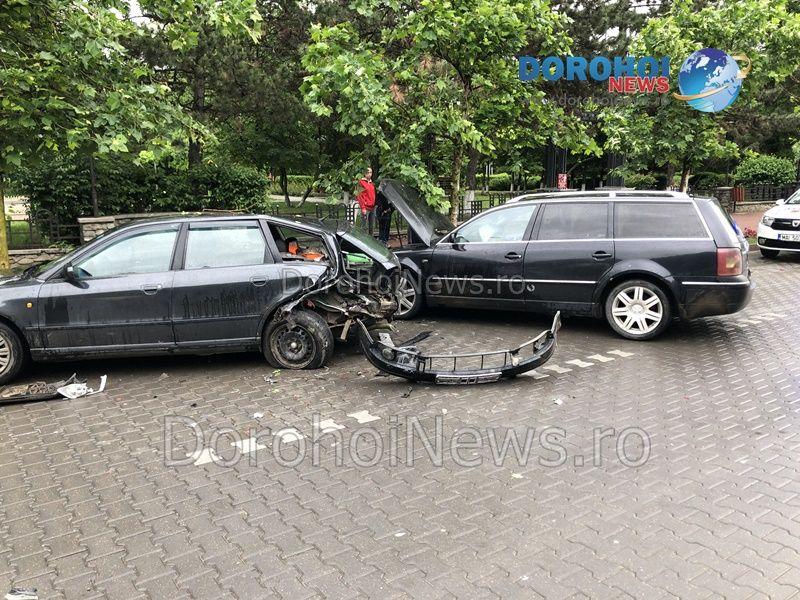Din primele informații, se pare că un autoturism Volkswagen condus de o șoferiță în vârstă de 24 de ani, pe sensul de coborâre a Bulevardului Victoriei din Dorohoi a intrat în coliziune cu un autoturism Audi și cu unul Dacia Logan. Pe același sens circula autoturismul Dacia Logan, iar la un moment dat șoferița s-a încadrat pe banda din dreapta fără să observe că aici era parcat un autoturism Audi. În urma impactului, autoturismul a ricoșat în Dacia Logan producându-i daune minore. În schimb, celelalte autoturisme au fost avariate serios. După impact nu au rezultat victime.