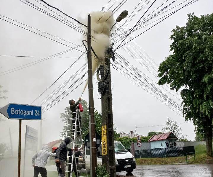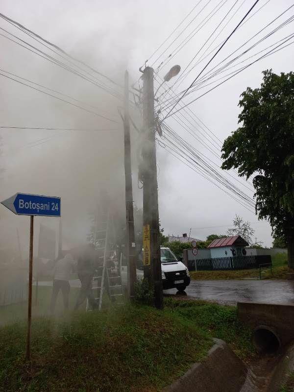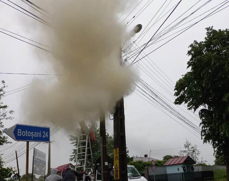 La Vorona și Dracșani, doi stâlpi electrici au luat foc. Pentru stingerea acestora au intervenit pompierii voluntari din cele două comune.