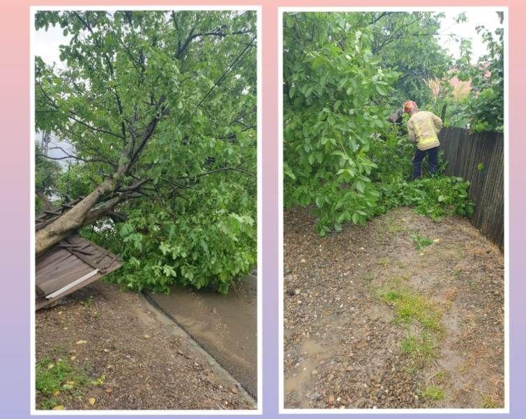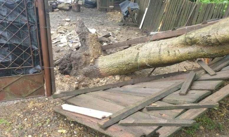 Arborele a căzut peste un gard și pe stradă, blocând accesul către mai multe gospodării, iar localnicii au solicitat intervenția pompierilor.