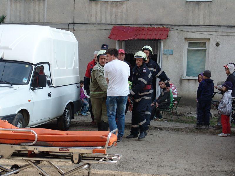 Din informatiile obtinute la fata locului, se pare ca echipajul de pe salvare a solicitat sprijinul pompierilor care sa ajute cu targa din dotare la coborarea pacientului pana la ambulanta.