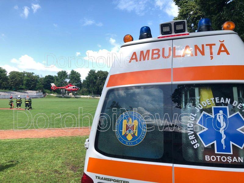 Elicopter SMURD solicitat marți, 6 iulie 2021, la Dorohoi, pentru a transporta un bărbat în vârstă de 44 de ani care a suferit un infarct.