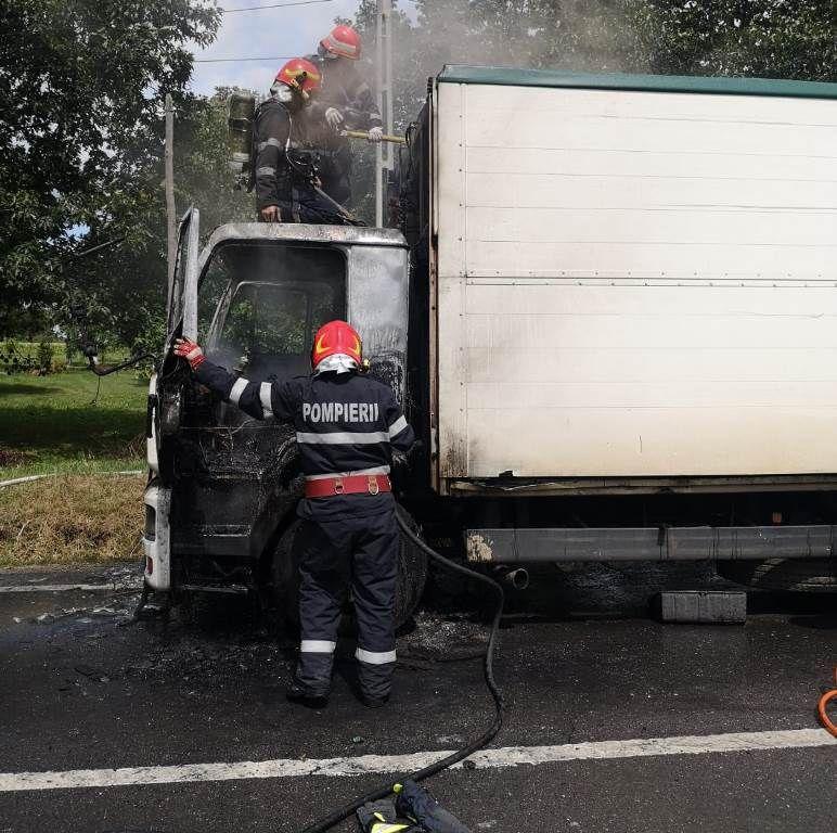 Un camion ce transporta marfă de la Dorohoi la Botoșani a luat foc, în această după-amiază, pe DN 29 B. Șoferul se afla la ieșirea din localitatea Brăești când a observat că de sub bord iese fum, a oprit și a coborât imediat. Cu toate că a folosit stingătorul din dotare, nu a reușit să stingă incendiul. Flăcările au cuprins în scurt timp întreaga cabină.