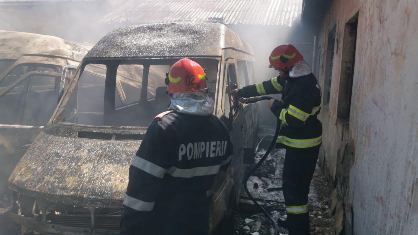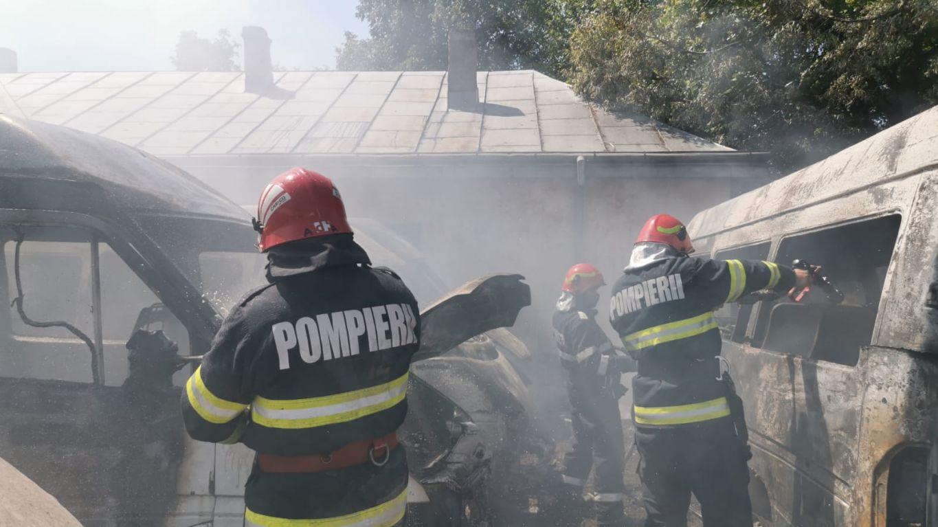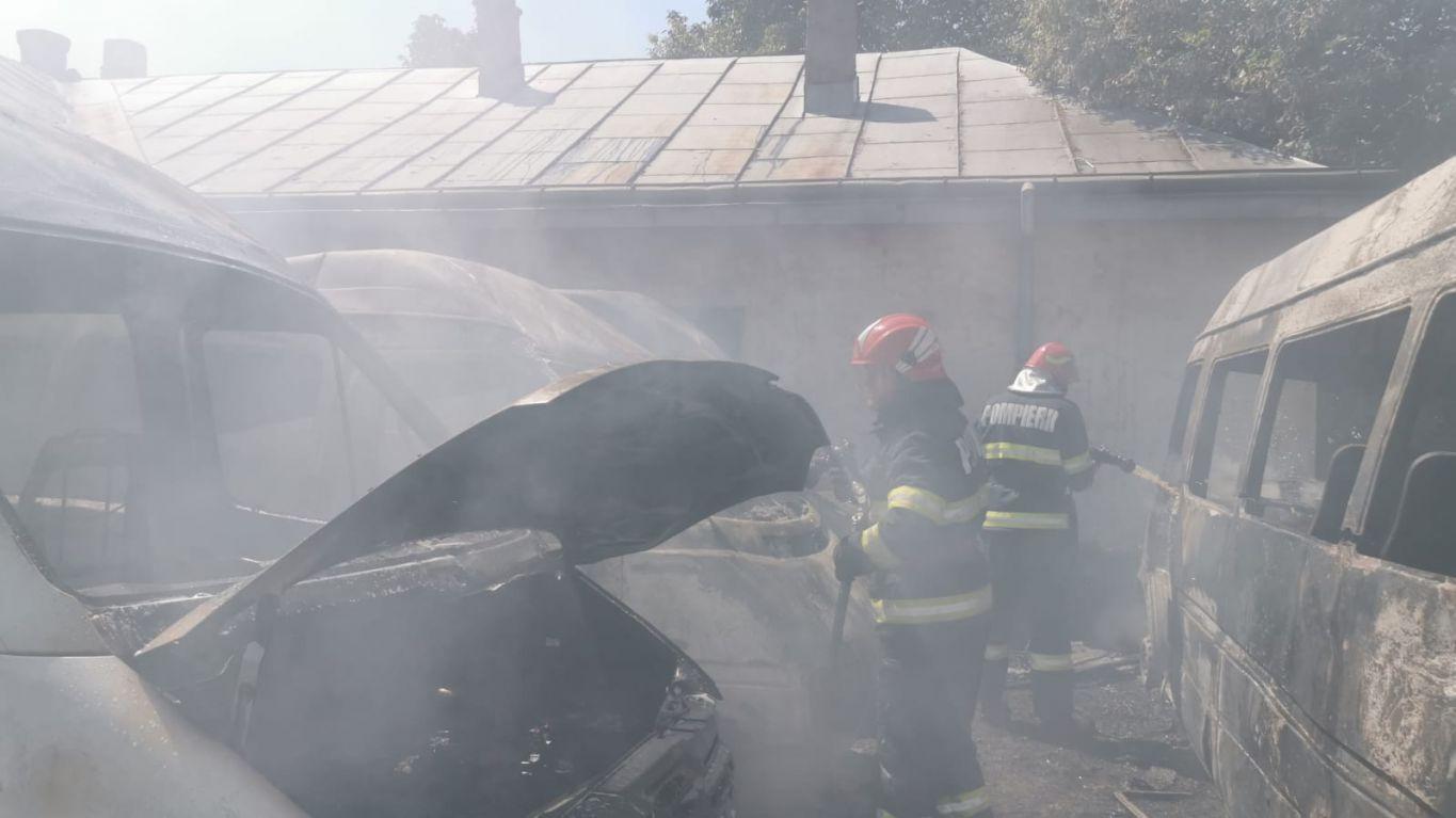 Flăcările uriașe care au izbucnit în garajul firmei Microbuzul, care asigură transportul în regim de maxi-taxi în municipiul Botoșani, a fost stins.