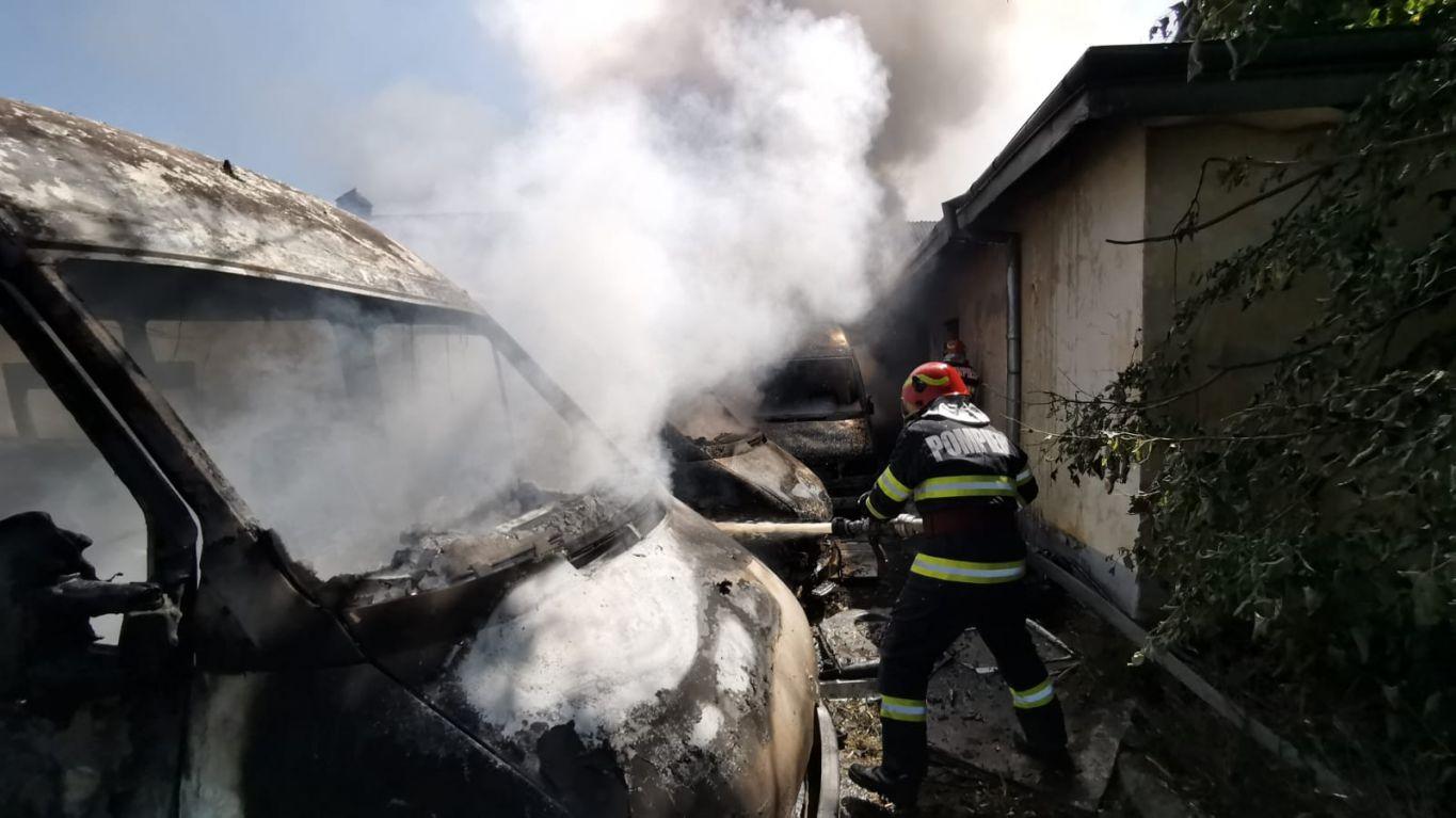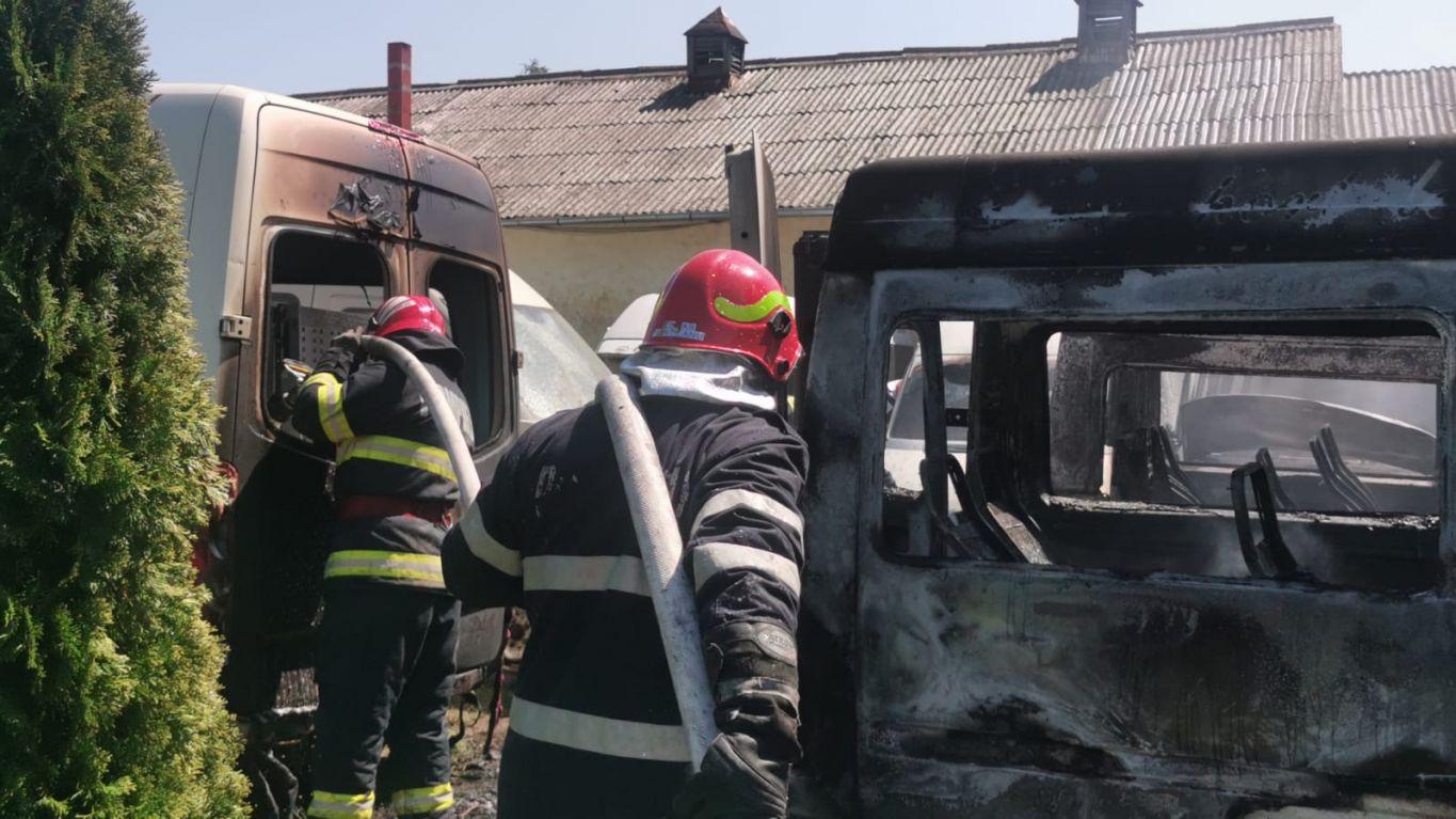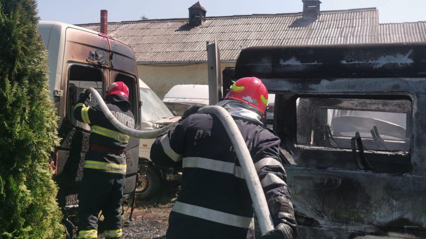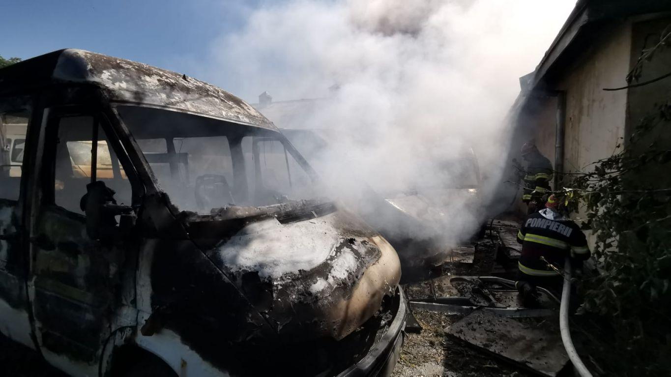 Flăcările uriașe care au izbucnit în garajul firmei Microbuzul, care asigură transportul în regim de maxi-taxi în municipiul Botoșani, a fost stins.