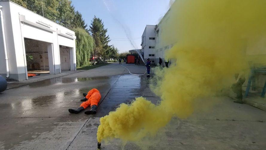 O altă situație tactică a presupus intervenția forțelor în cazul unei explozii la centrala termică din același obiectiv, urmată de incendiu. Mai multe persoane au suferit arsuri și au avut nevoie de ajutor medical. S-au simulat acțiuni de cautare-salvare a victimelor, acordare a primului ajutor calificat, limitare, localizare și stingere a incendiului.