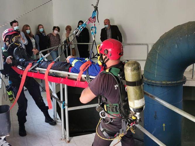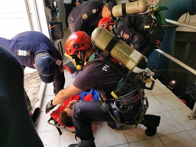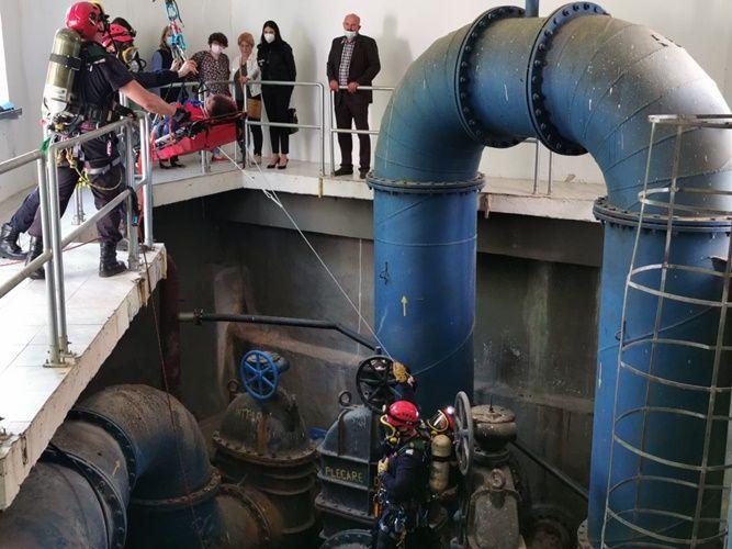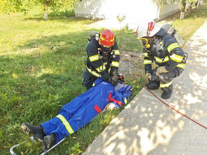 Două persoane rănite, căzute în camera vanelor a rezervoarelor, au fost aduse la suprafață de alpiniștii din cadrul ISU Botoșani.