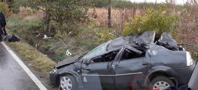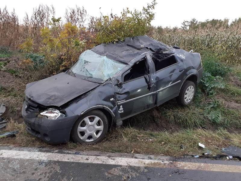Patru persoane, doi bărbați și două femei, s-au răsturnat cu mașina pe marginea unui drum de pe raza comunei Santa Mare, în această dimineață, 9 octombrie 2021.