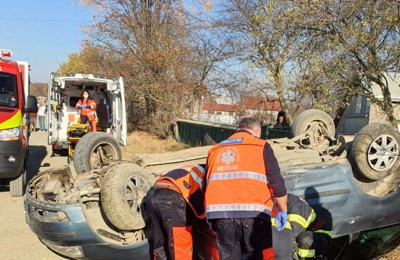 Un accident rutier a avut loc sâmbătă, 30 octombrie 2021, în localitatea Balta Arsă din comuna Corni. Un autoturism a ajuns cu roțile în sus din cauza vitezei.