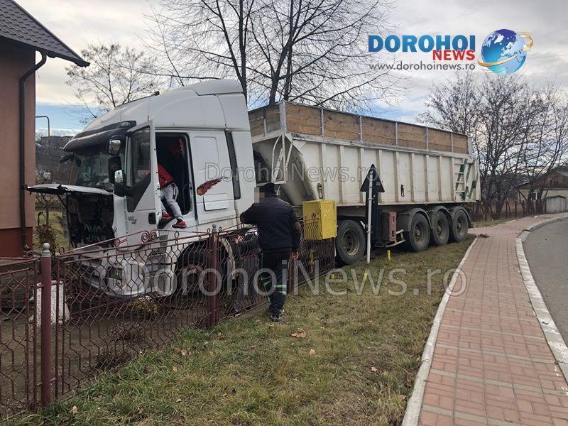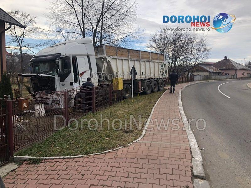 Din primele informații, se pare că șoferul unui camion de transport, marca Iveco, nu a mai virat la stânga într-o curbă ușoară, a rupt gardul unei case și s-a oprit în curte. Din fericire nimeni nu se afla atunci în curte fapt pentru care nu au rezultat victime, ci doar pagube materiale. (Andrei B.)