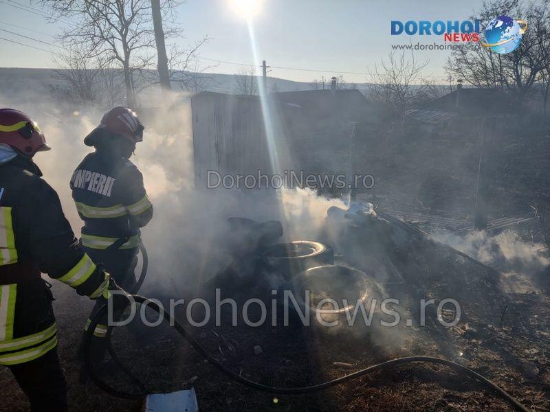Incendiul a fost anunțat la numărul de urgență 112 după ce s-a observat fum puternis în curtea unei case. La locul indicat s-a deplasat o autospecială cu apă şi spumă din cadrul Gărzii de Intervenție Săveni cu patru subofițeri. La sosirea pompierilor incendiul se manifesta în curtea unei case.