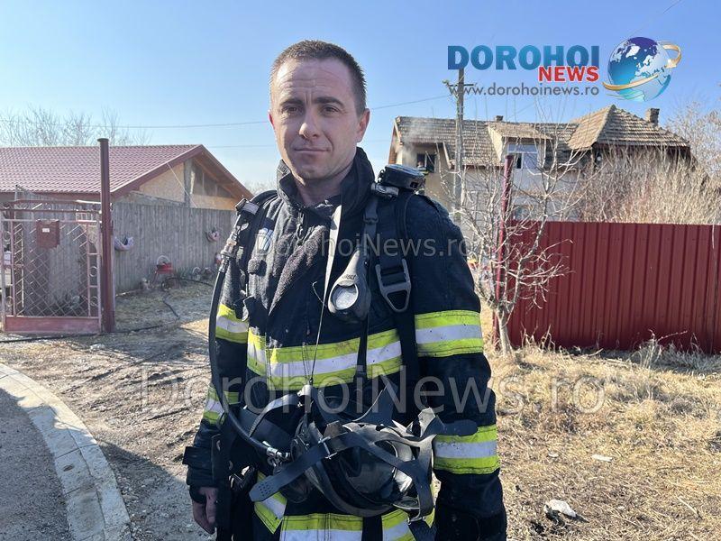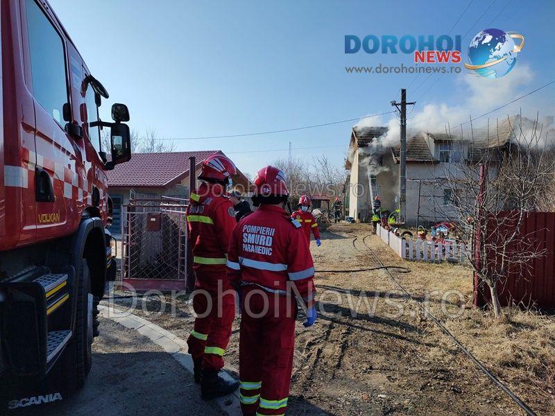 Incendiul a fost anunțat la numărul de urgență 112 după ce s-a observat fum puternic care ieșea din mansarda casei. La locul indicat s-au deplasat două autospeciale cu apă și spumă din cadrul Detașamentului de Pompieri Dorohoi, un echipaj SMURD și un echipaj de poliție. La sosirea pompierilor incendiul se manifesta într-un dormitor aflat în mansarda casei, cu posibilitate de extindere la întreaga locuință.