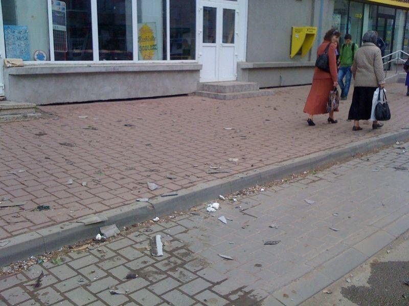 Acoperișul a căzut pe trotuarul și strada din fața blocului (B-dul Victoriei), unde au fost avariate ușor două autoturisme și din fericire nimeni nu a fost rănit. Polițiștii au sosit la fața locului și au deviat, pentru puțin timp, circulația pe celălalt sens de mers.